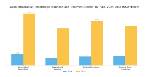 画像診断および診断ツールにおける技術革新は、世界の日本脳内出血診断・治療市場産業を形作る上で極めて重要です。高解像度CTやMRIスキャンなどの高度な画像診断技術は、効果的な治療に不可欠な迅速かつ正確な診断を可能にします。画像解析への人工知能の統合は、診断プロセスをさらに効率化します。これらの技術が進化するにつれ、患者の治療成果向上と治療費削減が期待されます。2035年までに27億5000万米ドル規模に達すると予測される市場の成長軌道は、精密な診断能力に対する需要の高まりに対応する上で、こうした進歩の重要性を裏付けています。