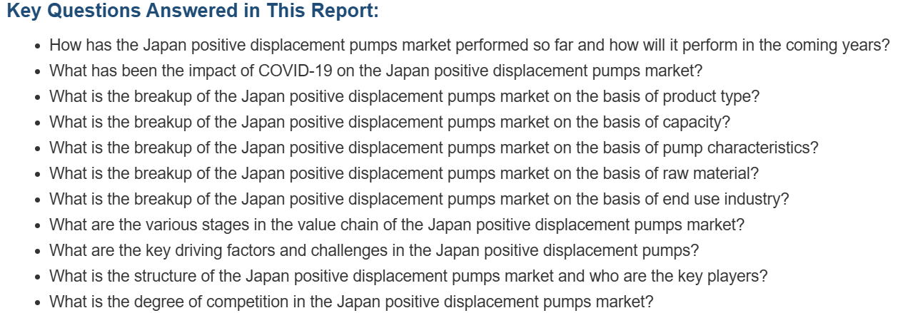 日本の市場は、国内の産業構造の進歩的な進化によって主に牽引されています。これに伴い、特に化学、製薬、食品・飲料業界といった日本の製造業の堅調な拡大は、容積式ポンプの正確かつ効率的な流体処理能力に大きく依存しています。したがって、これは世界中の市場に大きな影響を与えています。これと関連して、精密さと品質の高さで知られる日本の自動車産業では、計量やコーティングの用途にこれらのポンプを使用しており、市場の安定した需要に貢献しています。さらに、製造工程における自動化や先進技術の統合の傾向は、制御された正確な流量を提供するポンプのニーズを拡大しています。また、環境維持に対する日本の取り組みは、エネルギー効率に優れ、環境にやさしいポンプモデルの開発と採用を推進しています。これは、省エネルギーと環境への影響の低減に焦点を当てた国内外の規制とも一致しています。これとは別に、日本市場では、モニタリングおよび制御システムを搭載したスマートポンプの採用も増加しており、これはインダストリー4.0のより広範なトレンドの一部です。これらのスマートな容積式ポンプは、運転効率と予測保全能力を向上させ、それによってダウンタイムを最小限に抑え、機器のライフサイクルを延長します。さらに、ポンプ設計における技術の進歩と革新は、日本における容積式ポンプ市場の成長にダイナミックな環境を生み出しています。この市場を牽引するその他の要因としては、急速な都市化、消費者の嗜好の変化、個人の可処分所得水準の上昇などが挙げられます。