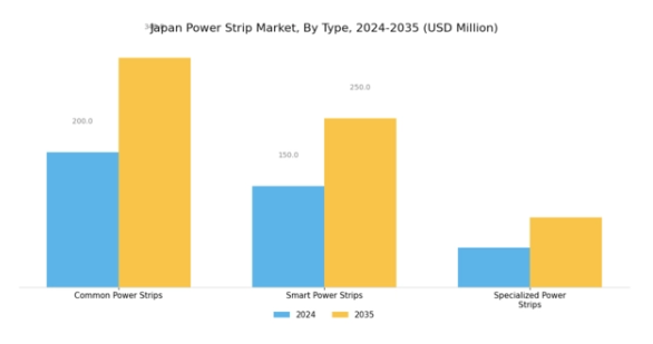 電力管理システムの技術的進歩は、電源タップ市場に大きな影響を与えています。エネルギー監視やモバイルアプリによる遠隔操作などの機能を備えたスマート電源タップといった革新的な製品は、日本の技術に精通した消費者の間で注目を集めています。消費者がエネルギー消費の最適化と電気料金の削減を求める中、スマート電源タップ市場は年間15%以上の成長が見込まれています。