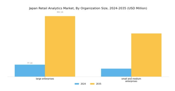 日本の小売アナリティクス市場は、組織規模に基づく多様な動向を示しており、市場のトレンドと成長に大きく影響しています。大企業は重要な役割を担っており、高度な分析ツールを活用してサプライチェーン管理の最適化、顧客体験の向上、戦略的意思決定の推進を図ることが多いです。