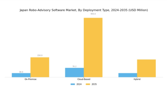 日本におけるロボアドバイザーソフトウェア市場の導入形態別セグメンテーションは、同地域における金融技術導入モデルの進化を示す重要な動向を浮き彫りにしています。デジタル金融サービスの採用拡大に伴い、日本の組織はオンプレミス、クラウドベース、ハイブリッドソリューションなど、様々な導入形態への移行を積極的に進めています。オンプレミス導入は、セキュリティとコンプライアンスを優先する機関から従来型に支持されてきました。これらのシステムは、組織のインフラストラクチャ内で直接、データプライバシーと管理に対するより大きな制御を可能にするためです。