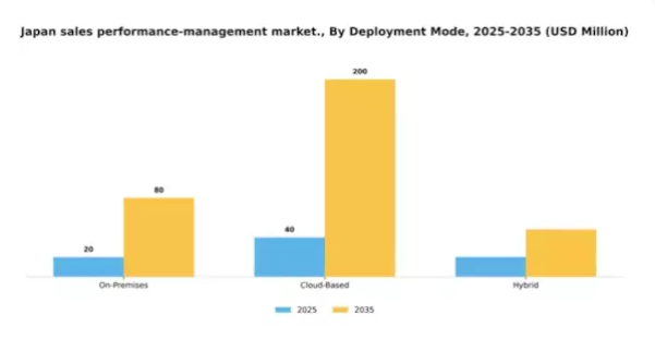 日本の営業パフォーマンス管理市場において、導入形態別の市場シェア分布を見ると、クラウドベースソリューションが最大の割合を占めており、その拡張性とアクセスの容易さが評価されています。従来型の人気のあるオンプレミス型システムは、クラウドベースプラットフォームが提供する柔軟性やリモートアクセス機能への需要の高まりにより、その地位を譲りつつあります。オンプレミス管理の利点とクラウドによる拡張性の両方を求める企業が増える中、ハイブリッドモデルは注目を集めていますが、現時点では市場シェアは比較的小さい状況です。この分野の成長傾向は、リモートワーク機能への需要増加や様々な産業におけるデジタルトランスフォーメーションの推進により、クラウドベースソリューションへの顕著な移行を示しています。ハイブリッドモデルは、既存インフラと革新的なクラウド機能を両立させ、多様な業務ニーズやコンプライアンス要件に対応できるため、最も急速に成長している分野として急速に台頭しています。この二重機能性は、パフォーマンス管理戦略の強化を目指す多くの企業にとって魅力的です。