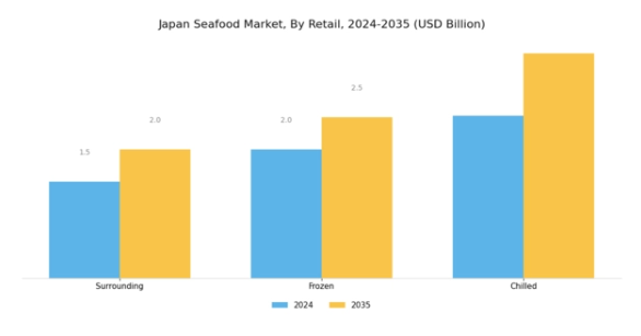 日本の水産物市場における小売セグメントは、全国的な消費者の多様な嗜好や需要に応える多様な環境が特徴です。このセグメントは、常温品、冷凍品、冷蔵品など複数の形態で構成され、それぞれが市場動向において重要な役割を果たしています。冷凍シーフードセグメントは、その利便性と長期保存性により人気を集めており、忙しい生活を送る日本の消費者のライフスタイルに合致しています。
