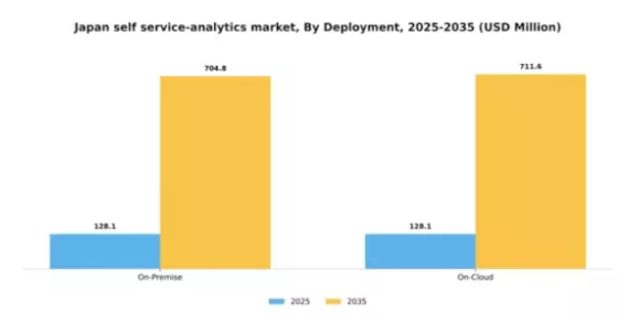 日本のセルフサービス分析市場におけるクラウド型分析ソリューションは、拡張性、アクセスの容易さ、初期費用の低さが特徴です。企業は分析アプリケーションを迅速に導入できるため、俊敏性を求める企業の間で好まれる選択肢となっています。クラウドアプローチは既存システムとのシームレスな統合を可能にし、チーム間の協働を促進します。一方、オンプレミス型分析は初期コストが高くITリソースを要するものの、厳格なデータガバナンスとセキュリティプロトコルを優先する組織にとって重要な選択肢として台頭しています。これらのソリューションはデータに対する完全な管理権限を提供し、規制遵守が不可欠な産業において必須の要件を満たします。こうした背景からオンプレミスシステムは魅力を増しており、進化する分析環境において均衡の取れた成長軌道を示しています。