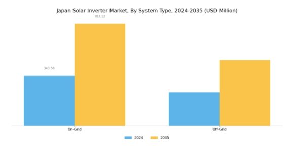 日本の太陽光インバーター市場では、システムの種類が特に重視されており、太陽光エネルギー応用の効率性と汎用性を決定する上で重要な役割を果たしています。市場は主にオングリッドシステムとオフグリッドシステムに分類され、いずれもユーザーのニーズに応じて異なる利点を提供します。