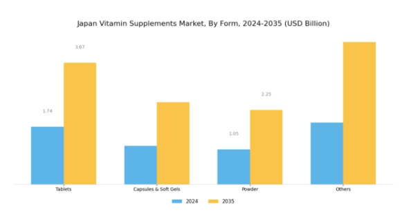 日本における高齢化は、ビタミンサプリメント市場にとって重要な推進要因です。年齢を重ねるにつれ、健康と活力を維持する方法を模索する方が増え、栄養補助食品の消費拡大につながっています。報告によれば、日本の人口の約28%が65歳以上であり、これは健康とウェルネスへの意識の高まりと相関しています。この人口動態の変化は、骨の健康や認知機能のためのサプリメントなど、高齢者の特定のニーズに合わせた製品の開発を促進しています。その結果、ビタミンサプリメント市場は成長を遂げる見込みです。この成長は、より多くの高齢者が予防的な健康対策と栄養サポートを優先するようになったことに起因しています。