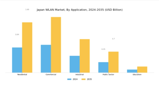 日本WLAN市場における接続技術セグメントは、高速かつ信頼性の高い接続に対する需要の高まりに対応するために進化を続ける無線ネットワークソリューションの動向を反映する点で極めて重要です。Wi-Fi 5は依然として普及していますが、Wi-Fi 6やWi-Fi 6Eといった進化した技術に徐々に取って代わられつつあります。これらは性能向上、容量増加、低遅延を実現し、日本の都市部に見られるような高密度環境における多数の接続デバイスに対応するために不可欠です。一方、Wi-Fi 7はゲームチェンジャーとして台頭しており、さらに高速な通信速度と効率性の向上を約束するため、特に企業やスマートホームアプリケーションにおいて重要な位置付けとなっています。