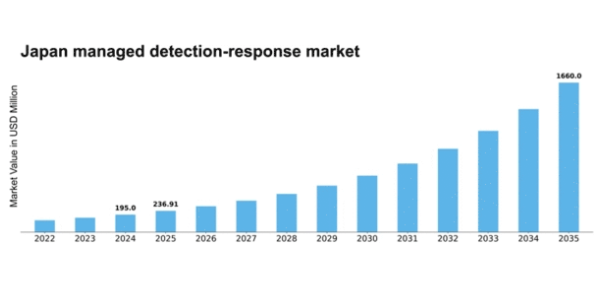 日本のマネージド・ディテクション・レスポンス市場は、サイバー脅威の増加と高度なセキュリティソリューションへの需要に牽引され、2024年から2035年にかけて21.49%のCAGRで成長すると予測されています。