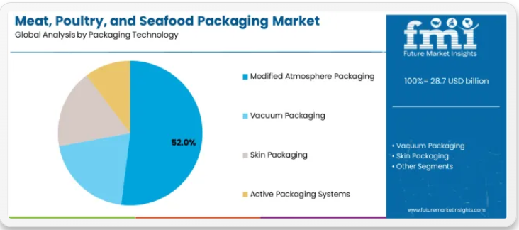 包装技術別では、調整雰囲気包装セグメントが52%の市場シェアを占める