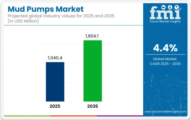泥水ポンプ市場は2025年に10億4,040万米ドルと評価され、2035年までに16億410万米ドルに達すると予測されており、予測期間における年平均成長過程(CAGR)は4.4%を示しています。この成長過程は、石油・ガス、建設、環境セクターにおける掘削および耐火ポンプ用途での導入増加によって支えられています。