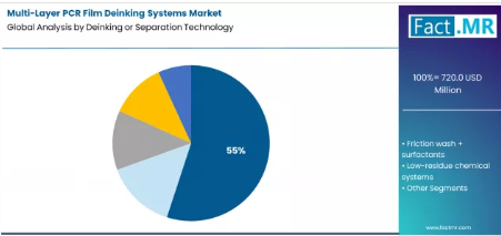 - 多層PCRフィルム脱墨システム市場の主要セグメント: 印刷済みPEまたはPP多層フィルム(55%)