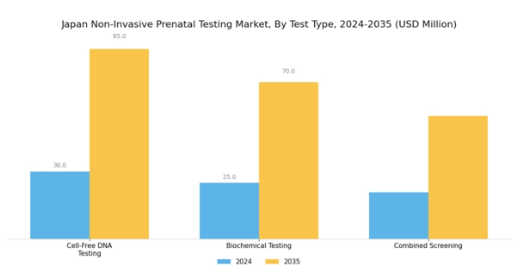 非侵襲的出生前検査を日常的な妊婦健診に統合することが、市場の主要な推進要因として浮上している。日本の医療提供者は、これらの検査を標準的な診療に取り入れることの価値をますます認識しており、これにより潜在的な遺伝性疾患の早期発見が向上する可能性がある。この変化は、医療従事者向けの研修プログラムによって支援される可能性が高く、患者との検査オプションに関する議論に十分な準備が整うことが期待されます。非侵襲的出生前検査が妊婦健診の標準的な一部となるにつれ、利用率の上昇が見込まれ、非侵襲的出生前検査市場の成長を促進するでしょう。