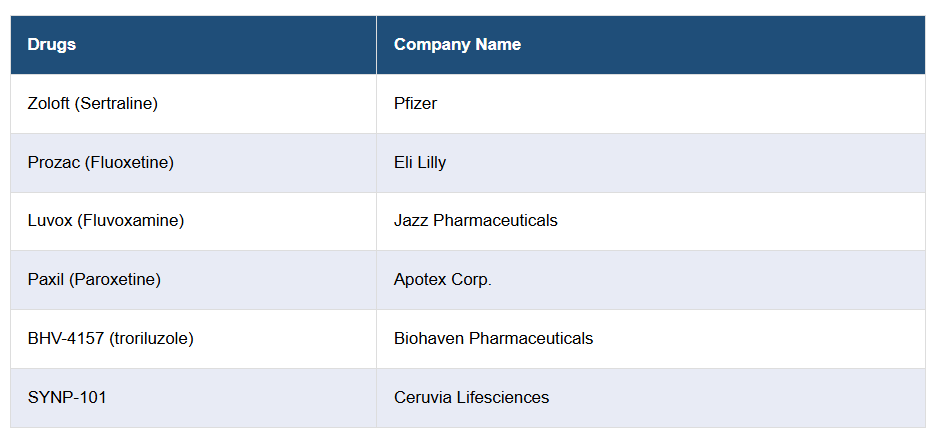 本レポートでは、現在市場流通中の強迫性障害治療薬および後期開発段階のパイプライン薬品についても詳細な分析を提供しております。
