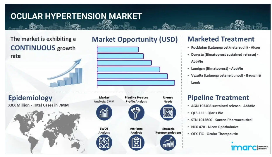 IMARC Groupの新報告書は、米国、EU4(ドイツ、スペイン、イタリア、フランス)、英国、日本における眼圧上昇症市場の包括的な分析を提供します。これには、治療実践、市場流通中および開発中の薬剤、個別療法のシェア、主要7市場における市場動向、主要企業とその薬剤の市場実績などが含まれます。また、主要7市場における現在および将来の患者数についても記載されています。本報告書によれば、米国は眼圧上昇症の患者数が最も多く、治療市場としても最大規模を占めています。さらに、現在の治療実践/アルゴリズム、市場推進要因、課題、機会、償還シナリオ、未充足医療ニーズなども本報告書で提供されています。本報告書は、製造業者、投資家、ビジネス戦略家、研究者、コンサルタント、および眼圧上昇症市場に関与している、あるいは参入を計画している全ての方にとって必読の資料です。
