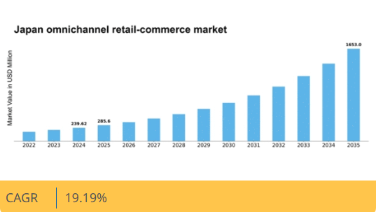 日本のオムニチャネル小売コマースプラットフォーム市場は、技術進歩と消費行動の変化を原動力として、2024年から2035年にかけて19.19%のCAGRで成長すると予測されています。