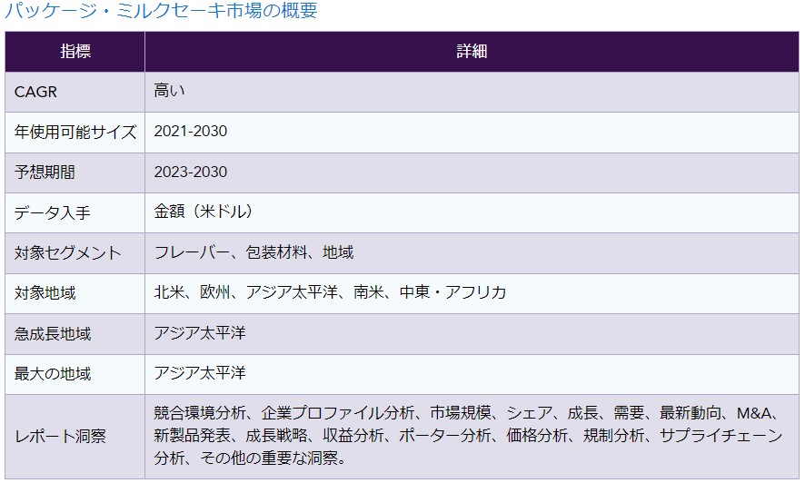 世界のパッケージミルクシェイク市場は、予測期間中(2024~2031年)に高いCAGRに達すると予測されている。