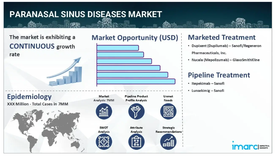 副鼻腔疾患市場は、IMARCの新報告書「副鼻腔疾患市場規模、疫学、市場内医薬品売上高、開発中の治療法、および地域別展望 2025-2035」において包括的に分析されております。