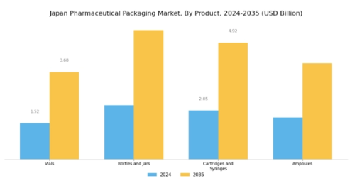 日本の医薬品包装市場は現在、技術の進歩と消費者の嗜好の変化により、著しい変革を経験しています。薬物送達システムにおける安全性とコンプライアンスに対する需要の高まりにより、革新的な包装ソリューションが採用されています。これらのソリューションは、医薬品の保護を強化するだけでなく、ユーザーの利便性も向上させます。さらに、持続可能性への重視がますます顕著になり、メーカーは環境への影響を軽減するための環境に優しい素材や手法を模索しています。この変化は、持続可能性と責任ある消費に向けたより広範な社会的傾向と一致しています。加えて、日本の規制枠組みは新たな包装技術に対応するよう適応しており、スマート包装ソリューションの導入を促進する可能性がある。こうした革新には、温度監視機能や改ざん防止設計などの特徴が含まれ、製品の完全性と消費者の信頼を高める。市場が進化するにつれ、製薬会社と包装メーカー間の連携は強化され、特定のニーズに応える特注ソリューションの開発が促進される見込みである。全体として、技術進歩と持続可能性への取り組みに牽引され、医薬品包装市場は成長の兆しを見せている。