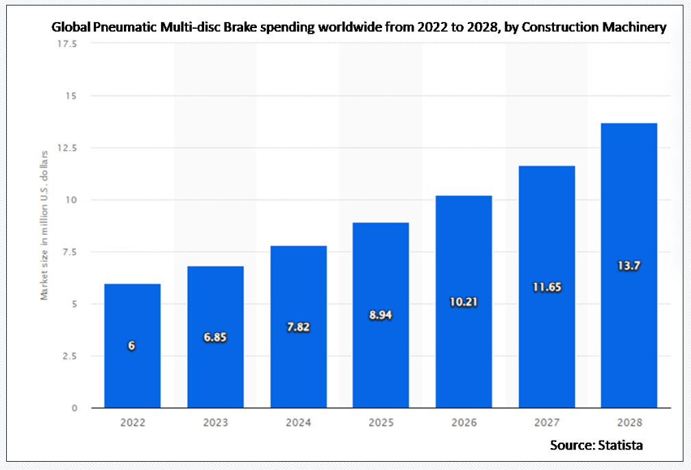 ストラティスティクスMRCによると、世界の空気圧式多板ブレーキ市場は予測期間中に年平均成長率(CAGR)4.2%で成長している。空気圧式マルチディスクブレーキは、複数の摩擦ディスクを空気圧で接合・解放することで、シャフトや機械部品の回転を停止または制御する制動装置である。この種のブレーキは、信頼性と正確な停止性能が求められる重機、自動車、産業設備、その他の機械システムに広く採用されている。産業環境での使用に耐える信頼性と過酷な使用条件への対応能力から、これらのブレーキは産業分野で活用されている。
