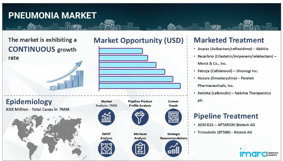 肺炎市場に関する包括的な分析は、IMARCの新報告書『肺炎市場規模、疫学、市場内医薬品売上高、開発中の治療法、および地域別展望 2025-2035にて掲載されております。肺炎とは、片方または両方の肺の肺胞(空気の袋)に腫れや体液・膿が溜まる感染症です。
