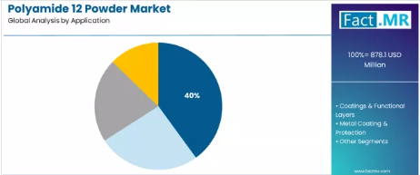 - ポリアミド12粉末市場の主要用途:粉末床溶融法および3Dプリンティング(40.0%)
