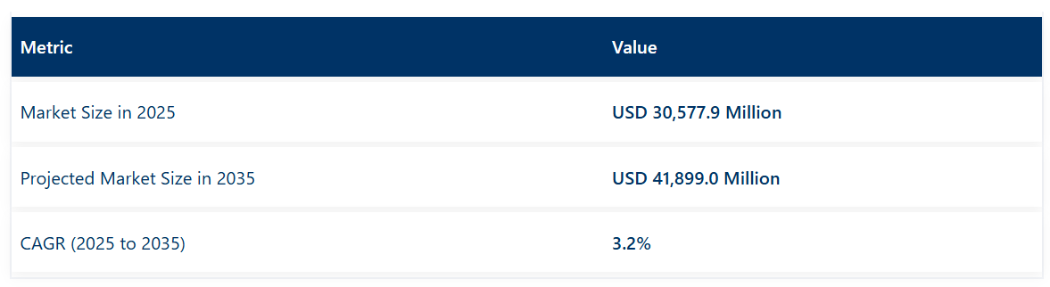 世界のポリエチレンテレフタレート(PET)市場は、2025年の305億7790万米ドルから2035年までに418億9900万米ドルへと拡大し、予測期間中の年平均成長率(CAGR)は3.2%と予測されております。