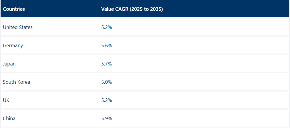 その後、2025年上半期から2035年下半期にかけては、CAGRが前半で4.6%にやや低下し、後半では4.2%と比較的低い水準で推移すると予測される。前半期(H1)では110ベーシスポイント(BPS)の減少が確認された一方、後半期(H2)では90ベーシスポイント(BPS)の減少が確認された。