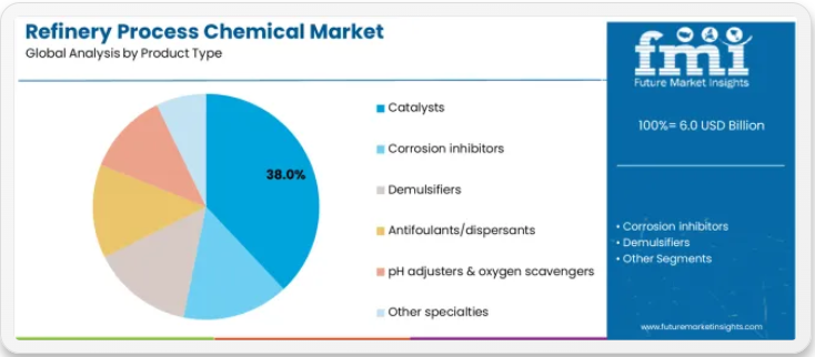 市場進化パターン:高度な化学処理能力、FCC操業、統合石油化学生産を有する複合製油所において戦略的に導入が加速。厳しい環境要件、製品品質仕様、操業最適化の必要性が、先進的な化学技術・触媒技術への投資とプレミアム価格設定を正当化する。地理的には、確立されたインフラを有する沿岸製油センターに集中し、燃料規格向上義務、環境規制の収斂、確立市場からの技術移転を背景に、内陸製油所や新興経済国施設への主流導入へ漸進的に移行。技術開発は、持続可能な航空燃料・再生可能ディーゼル生産を可能とする再生可能原料共処理用触媒・化学支援、水処理効率向上・ゼロ液体排出システム最適化、製油所全体の最適化プラットフォームや予知保全システムとのデジタル統合に重点が移りつつある。