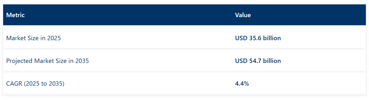リジッド産業用包装市場は、2025年の356億米ドルから2035年までに547億米ドルへ成長し、予測期間中に4.4%の年平均成長率(CAGR)を記録すると見込まれております。