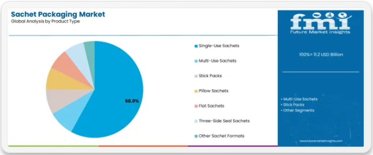 製品種類別では、単回使用サシェセグメントが58%の市場シェアを占める