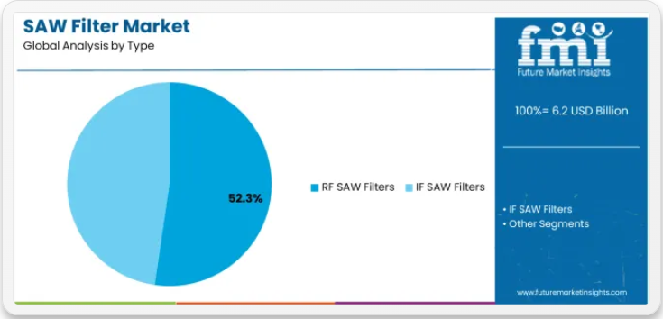主要分類: 市場は種類別にRF SAWフィルターとIF SAWフィルターに分類され、基本信号処理機器から包括的な通信最適化のための専門周波数ソリューションへの進化を表す。