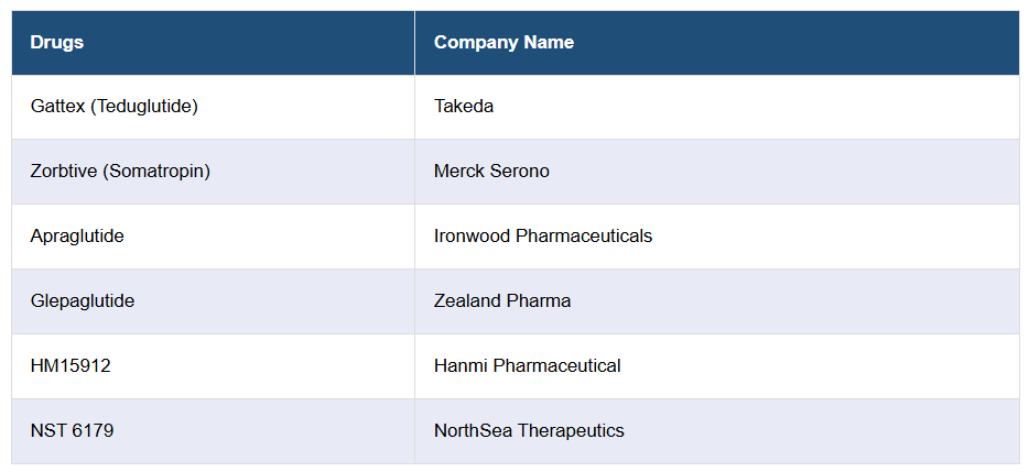 本レポートでは、現在販売されている短腸症候群治療薬および後期開発段階のパイプライン医薬品についても詳細な分析を提供しております。