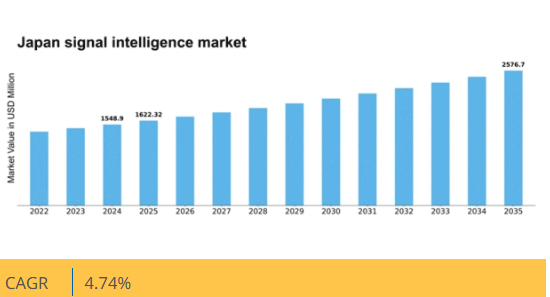 日本の信号情報市場は、技術の進歩と防衛支出の増加により、2024年から2035年にかけて4.74%のCAGRで成長すると予測されています。