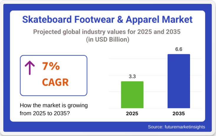 スケートボード用フットウェア・アパレル市場規模、シェア、および2025年から2035年までの予測見通し