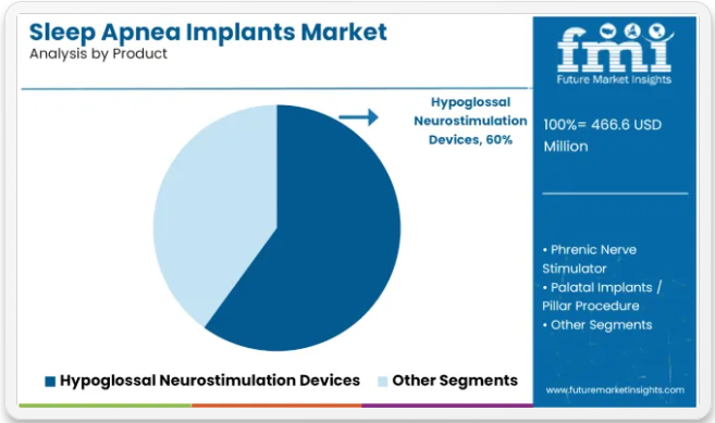 製品別では、横隔神経刺激装置、舌下神経刺激装置、骨スクリューインプラントシステム、口蓋インプラント/ピラー処置に分類される。
