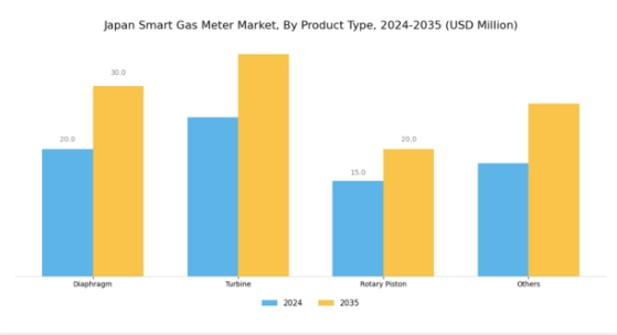 日本のスマートガスメーター市場は、様々な製品タイプに焦点を当てて進化しており、業界全体の成長と機能性に大きく貢献している。国がエネルギー効率の向上と効果的な資源管理の必要性を強調する中、スマートガス計測の重要性が明らかになっている。ダイヤフラム式メーターは、その精度と信頼性から住宅用途で好まれることが多く、低ガス流量の計測に優れており、これは人口密集地域である日本の家庭用として不可欠である。