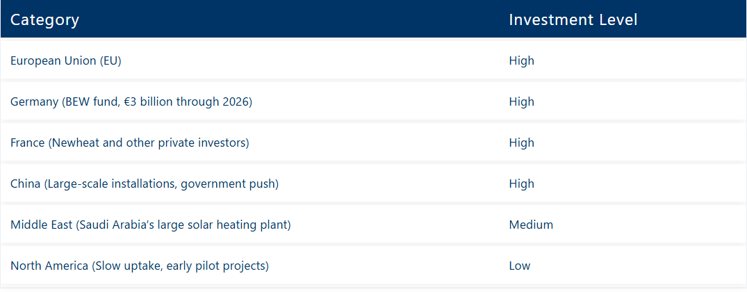 ドイツは強力な環境政策とそれを支える先進的なクリーンエネルギーインフラにより、再生可能熱分野で世界をリードしている。最先端の炭素排出政策と積極的な気候政策により、太陽熱技術への堅調な投資が進んでいる。集熱器効率とエネルギー貯蔵装置における企業のリーダーシップが、住宅・商業・自治体市場の成長過程を牽引している。