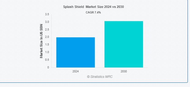 Stratistics MRCによると、スプラッシュシールドの世界市場は2024年に19.9億ドルを占め、予測期間中の年平均成長率は7.4%で、2030年には30.6億ドルに達する見込みです。スプラッシュシールドは、水、汚れ、破片、その他の外的要素が車両、機械、装置の敏感な部分に飛散するのを防ぐように設計された保護部品です。通常、スプラッシュシールドはプラスチックやゴムのような耐久性のある素材で作られており、ホイールウェル、アンダーキャリア、エンジンベイなどの領域に戦略的に配置されます。スプラッシュシールドは、腐食性要素にさらされる機会を減らし、磨耗や損傷を最小限に抑え、車両全体の性能と安全性を高めることで、これらの部品の機能性と寿命を維持するのに役立ちます。