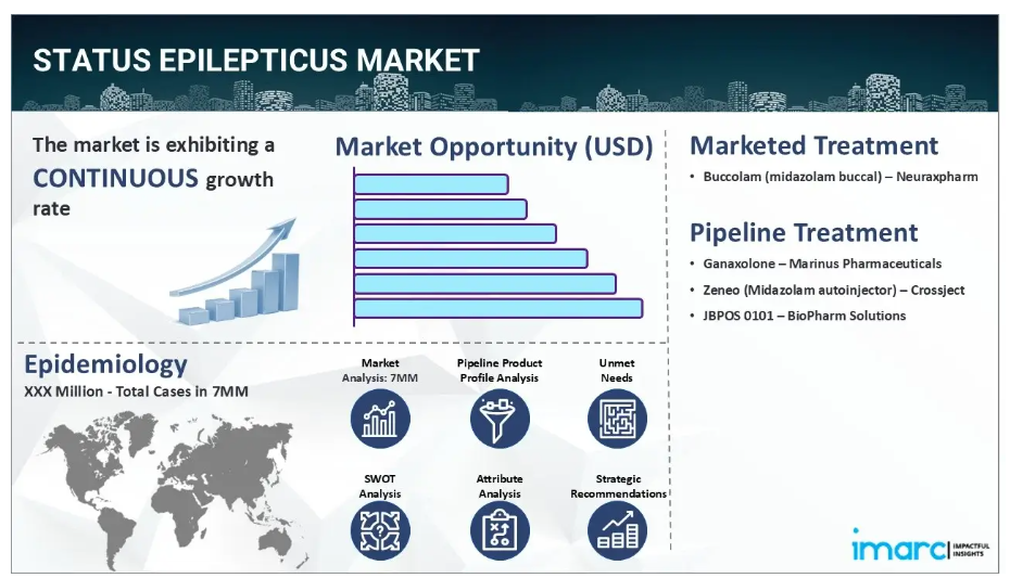 IMARC Groupの新報告書は、米国、EU4(ドイツ、スペイン、イタリア、フランス)、英国、日本におけるてんかん重積状態市場について包括的な分析を提供しております。これには、治療実践、市場流通薬・開発中の薬剤、個別療法のシェア、主要7市場における市場動向、主要企業とその薬剤の市場実績などが含まれます。また、主要7市場における現在および将来の患者数についても提示しております。本報告書によれば、米国はてんかん重積状態の患者数が最も多く、治療市場規模も最大となっています。さらに、現在の治療実践/アルゴリズム、市場推進要因、課題、機会、償還シナリオ、未充足医療ニーズなども本報告書に記載されております。本報告書は、製造業者、投資家、ビジネス戦略家、研究者、コンサルタント、およびあらゆる形でてんかん重積状態市場に関与している、あるいは参入を計画している方々にとって必読の資料です。