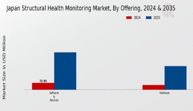 日本の構造健全性監視市場は、技術の進歩とインフラの安全性・監視に対する需要の高まりを背景に、著しい成長を遂げている。この市場において、提供内容は効果的な構造健全性評価に寄与する様々な必須要素を包含するため極めて重要である。このカテゴリーは主にハードウェア、ソフトウェア、サービスに分類され、それぞれが監視システムの全体的な機能性と効率性において重要な役割を果たしている。ハードウェアソリューションには、構造物の継続的監視を可能にするリアルタイムデータ収集に不可欠なセンサーやデバイスが含まれる。