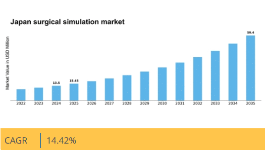 日本の外科手術シミュレーション市場は、技術進歩、低侵襲手術への需要増加、訓練手法の高度化を背景に、2025年から2035年にかけて年平均成長率(CAGR)14.42%で成長すると予測される。