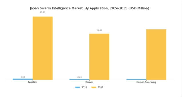 日本の群知能市場は顕著な成長を遂げており、ロボティクス、ドローン、ヒューマンスワミングにおいて重要な応用が見られる。ロボティクスは製造や医療を含む様々な分野で自動化と効率性を高める群知能を活用する重要領域として台頭している。
