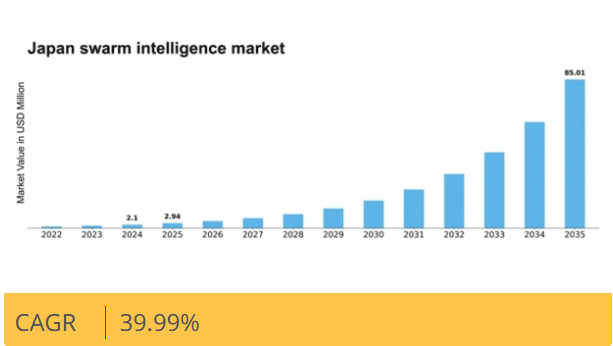 日本の群知能市場は、AI・ロボティクス・データ分析技術の進歩を背景に、2025年から2035年にかけて年平均成長率39.99%で拡大すると予測される。
