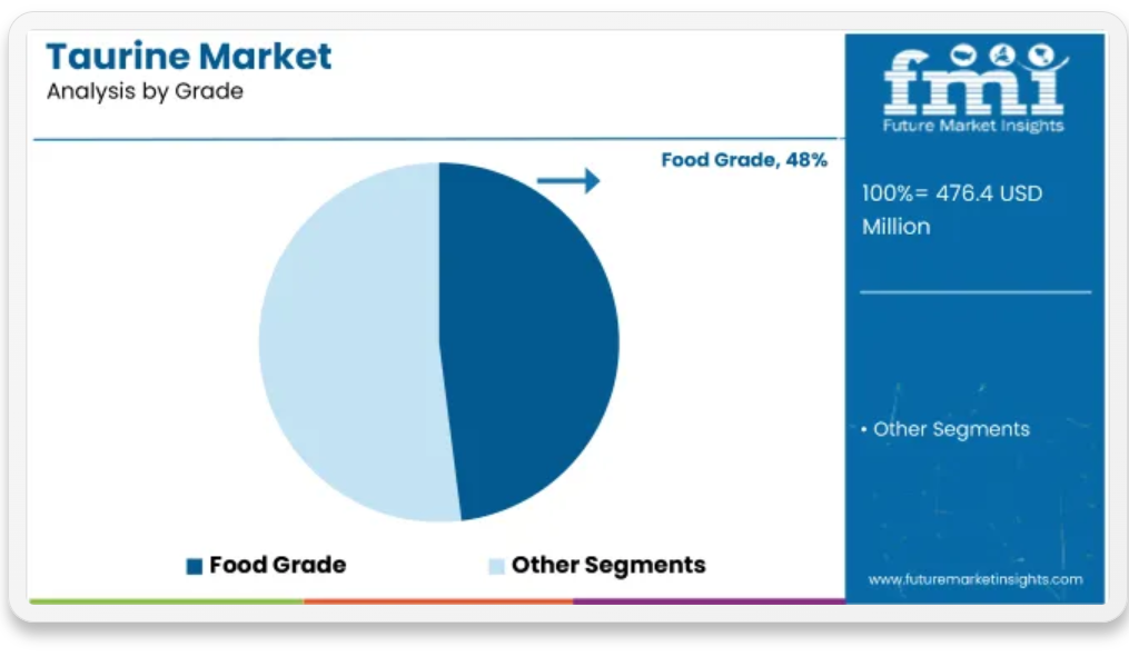 - 規制当局の認可やクリーンラベルの需要も、食品グレードのタウリンの成長をさらに後押ししています。