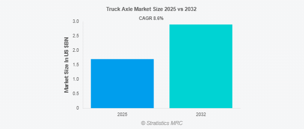 Stratistics MRCによると、トラックアクスルの世界市場は2025年に17億ドルを占め、予測期間中の年平均成長率は8.6%で、2032年には29億ドルに達する見込みです。トラックの車軸は、車輪の回転を可能にしながら、車両とその貨物の重量を支える回転する車輪またはギアの中心軸です。トラックにおいて車軸は、重い荷重に耐え、車両の安定性を維持し、移動と制動を容易にするという重要な役割を果たします。アクスルは、フロント、リア、およびリフトアクスルに分類され、それぞれがステアリングや荷重配分など、特定の目的を果たします。二輪駆動や全輪駆動など、駆動構成に応じて、トラックアクスルは動力式と非動力式があります。最新のアクスルは、耐久性、効率性、およびさまざまな交通安全規制や荷重規制への準拠を目的として設計されています。