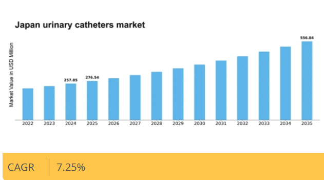 日本の尿道カテーテル市場は、技術進歩と医療ニーズの増加を背景に、2025年から2035年にかけて年平均成長率(CAGR)7.25%で成長すると予測される。