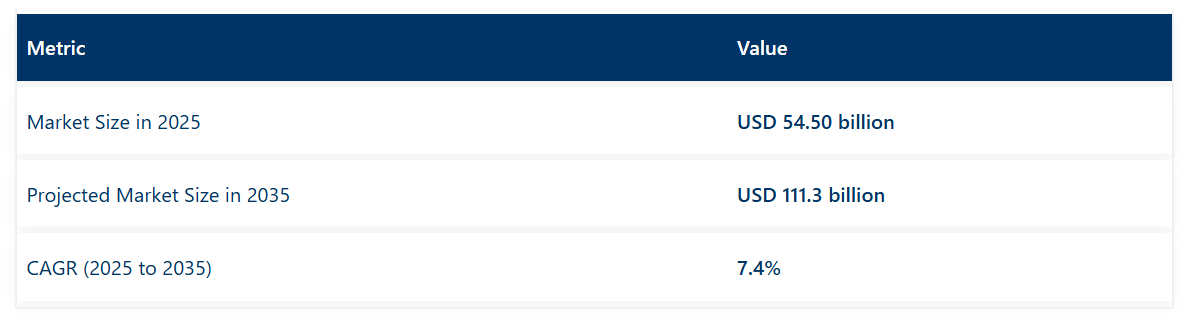 世界のワクチン市場は、2025年に545億米ドルと推定され、2035年までに1,113億米ドルに達すると予測されています。予測期間における年平均成長率(CAGR)は7.4%となる見込みです。
