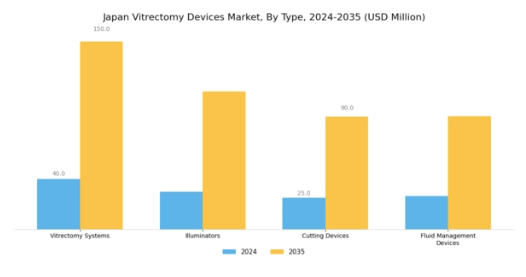 - 日本硝子体切除装置市場の市場規模は、2024年の1億2150万米ドルから2035年までに4億4040万米ドルへ成長すると予測される。