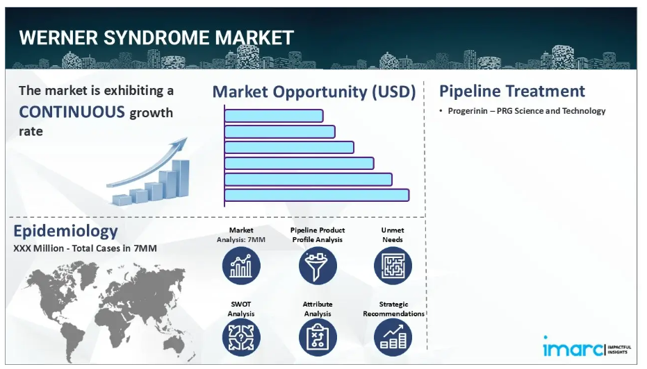 IMARC社の新報告書「ウェルナー症候群市場規模、疫学、市場内医薬品売上高、開発中の治療法、および地域別展望 2025-2035年」において、ウェルナー症候群市場が包括的に分析されました。ウェルナー症候群は、早老症を特徴とする稀な常染色体劣性疾患であり、骨粗鬆症、2型糖尿病、白内障、心血管疾患などの加齢関連疾患の早期発症につながります。本症候群は、DNA修復・維持に不可欠なヘリカーゼをコードするWRN遺伝子の変異によって引き起こされます。