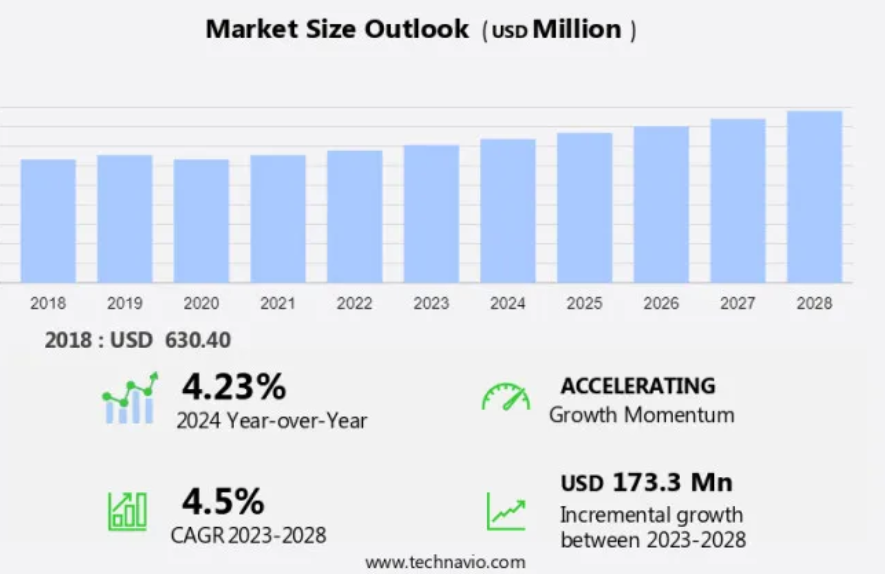 市場調査レポートでは、以下の区分における2024年から2028年の期間について、「百万米ドル」単位での予測と推定、および2018年から2022年の期間の過去のデータを含む包括的なデータ(地域別セグメント分析)を提供しています。
